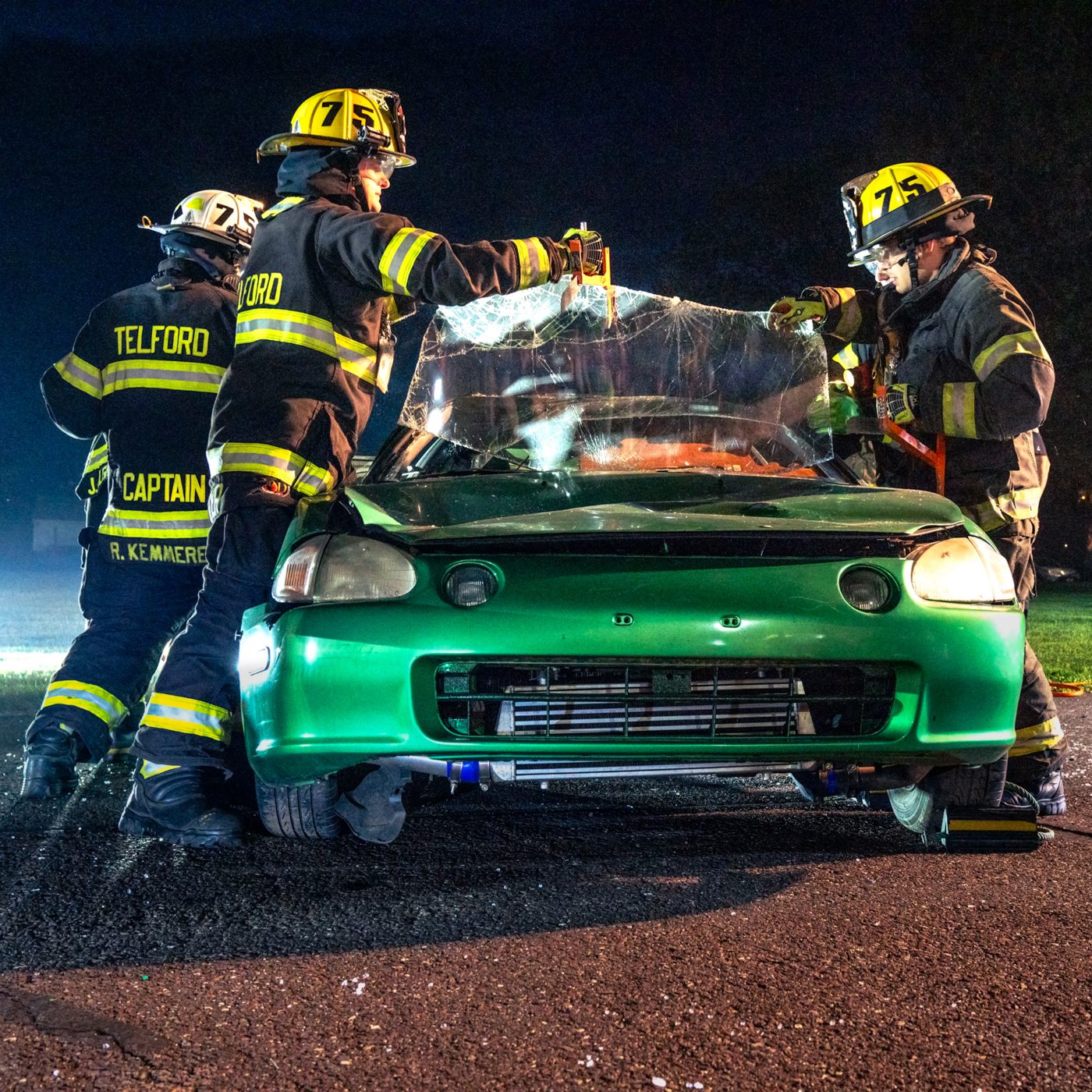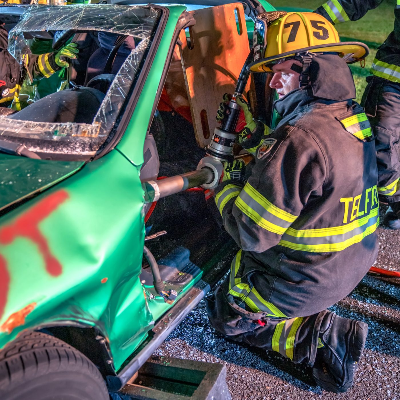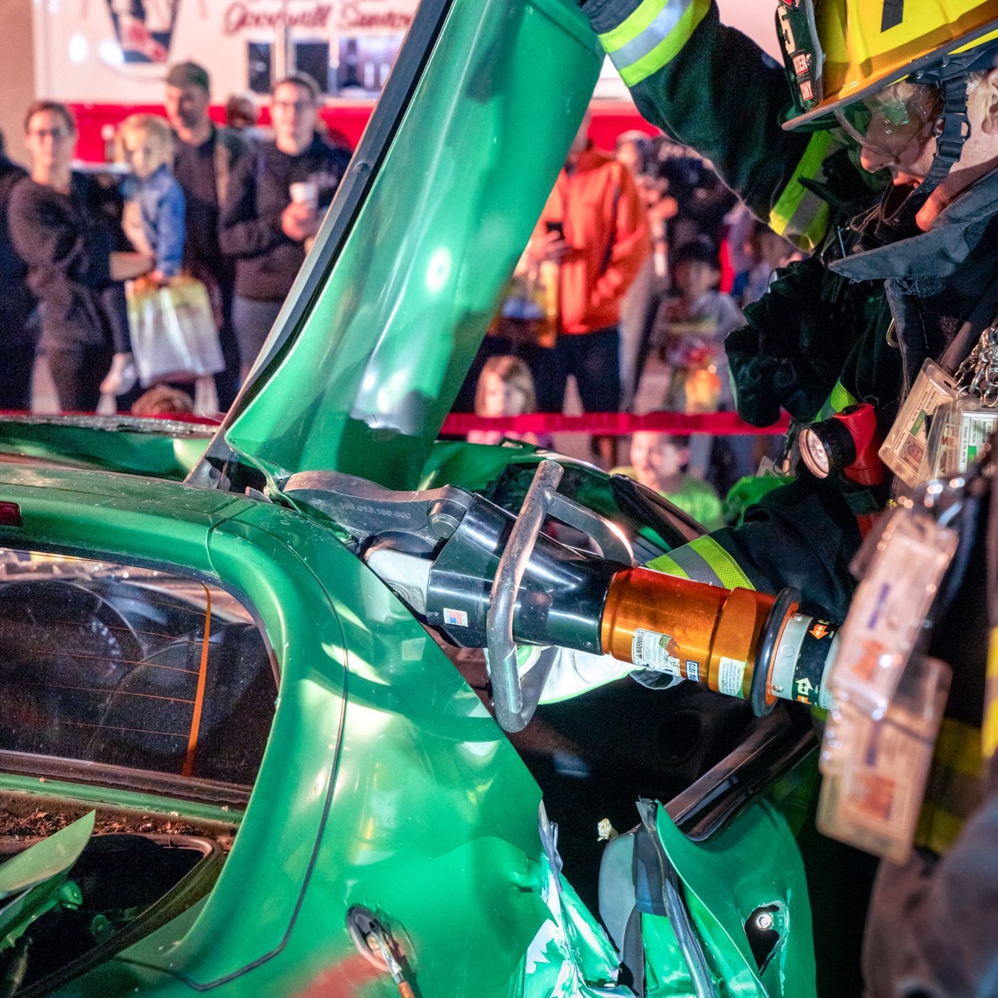 Photos of the Perseverance Fire Company Open House, including a rescue and fire drill.